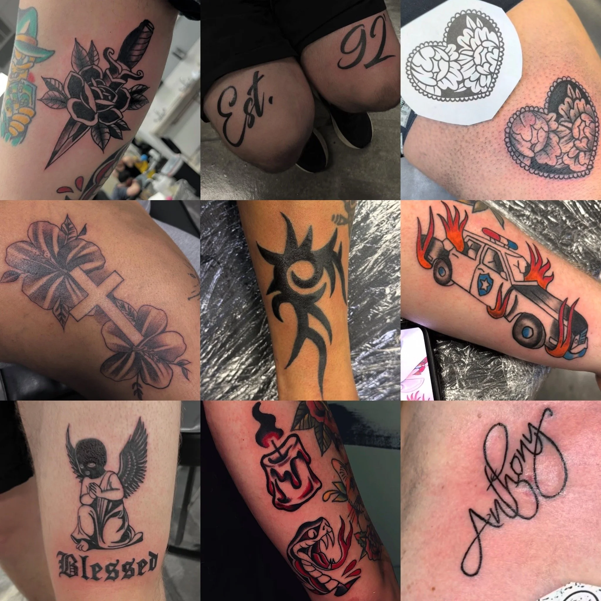 Outside of work, Anthony enjoys trying new food spots, riding ATVs, going on vacation, and spending time with his significant other. He’s excited to continue learning + growing in the tattoo world!